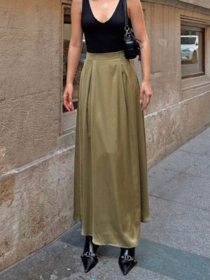 Product Features: HIGH WAIST, ELASTIC WAIST, SIDE POCKETS, FRONT AND BACK STITCHING DETAIL SKIRT